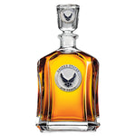 This 24 ounce glass decanter is embellished with a fine pewter casting. It is a great match with two Double Old Fashioned glasses. A great addition to any home bar! Made in USA.