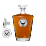 This 25 ounce glass decanter is embellished with a fine pewter casting. Be sure to match it with some of our Double Old Fashioned glasses. A great addition to any home bar!