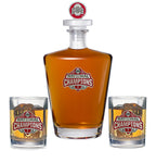 This is a set of a 25-ounce glass decanter with a fine pewter casting, 3D Topper, and two Double Old Fashioned Glasses.  A great addition to any home bar!  Made in USA.