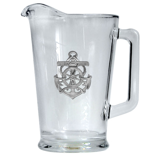 This 60-ounce glass pitcher features a fine pewter casting. The details in this 3-d sculpted design are incredible! Made in USA.