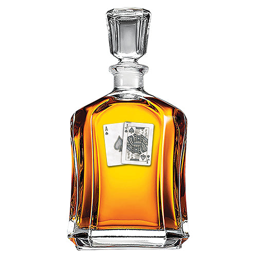 This 24 ounce glass decanter is embellished with a fine pewter casting. It is a great match with two Double Old Fashioned glasses. A great addition to any home bar! Made in USA.