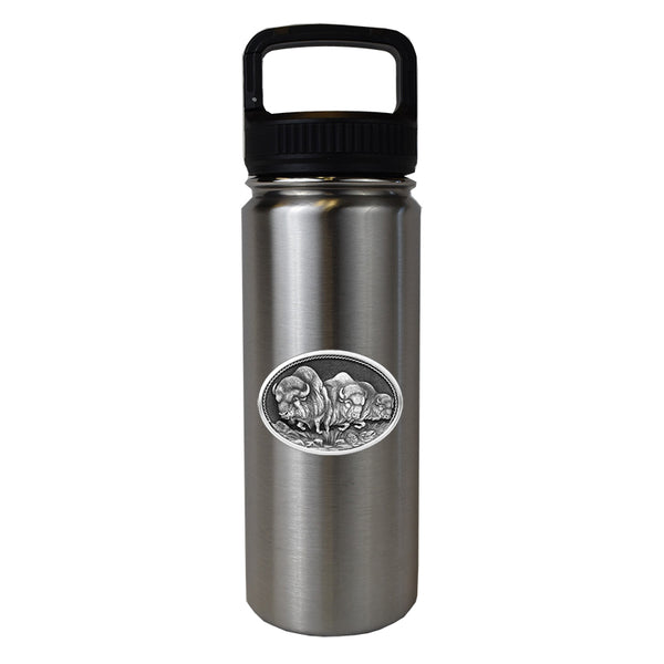 This 27 oz (800 mil) double wall stainless steel thermos is insulated and it is stainless inside and out. It is embellished with a fine pewter decorative casting. The lid has a screw on lid with a handle for easy transport.Heritage Pewter has been hand-crafting fine pewter gifts since 1988. We offer an array of pewter products, ranging from barware to wind chimes, golf clubs to coffee mugs.