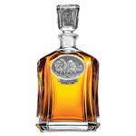 This 24 ounce glass decanter is embellished with a fine pewter casting. This may be paired with two Double Old Fashioned glasses. A great addition to any home bar! Made in USA. Yellowstone National Park banner prominently displayed.