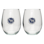 This is a set of two 12 ounce glass goblets with a fine pewter logo medallion bonded to the side. It could be used to serve water, wine or other beverages. Made in USA.