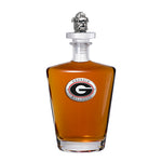 This 25 ounce glass decanter is embellished with a fine pewter casting and a 3-dimensional figure on top. Be sure to match it with some of our Double Old Fashioned glasses. A great addition to any home bar! Made in USA.