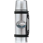 This 1 liter stainless steel thermos features a fine pewter casting. The details in this 3-d sculpted design are incredible! Made in USA.