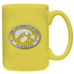 This coffee mug is decorated with a fine pewter casting. It is microwaveable and dishwasher safe with no heat cycle.. The glass coffee mug is 16 ounces, and the ceramic coffee mug is 15 ounces.