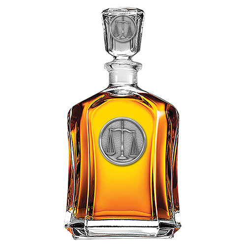 This 24 ounce glass decanter is embellished with a fine pewter casting. It is a great match with two Double Old Fashioned glasses. A great addition to any home bar! Made in USA.