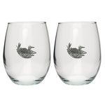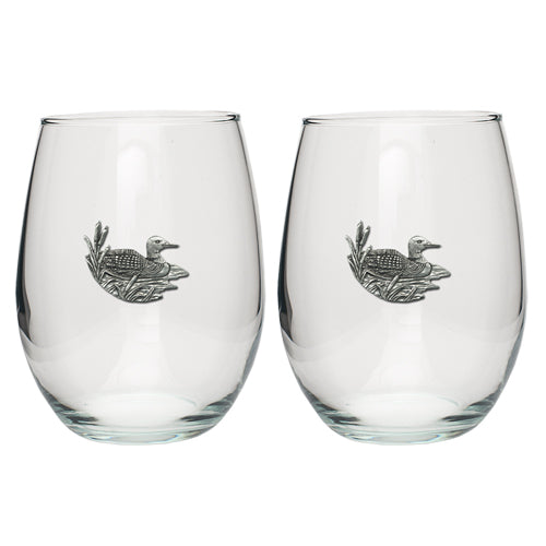 This is a set of two 12 ounce glass goblets with a fine pewter logo medallion bonded to the side. It could be used to serve water, wine or other beverages. Made in USA.