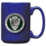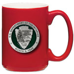 This coffee mug is decorated with a fine pewter casting. It is microwaveable and dishwasher safe with no heat cycle.. The glass coffee mug is 16 ounces, and the ceramic coffee mug is 15 ounces.