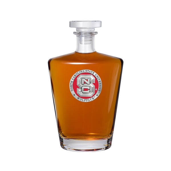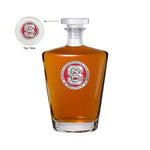 This 25 ounce glass decanter is embellished with a fine pewter casting. It is a great match with two Double Old Fashioned glasses. A great addition to any home bar! Made in USA.
