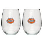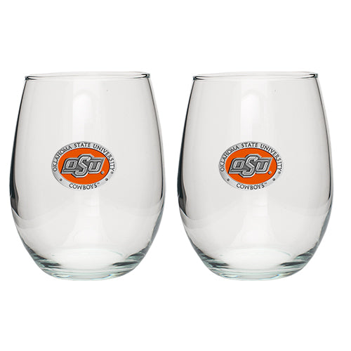 This is a set of two 12 ounce glass goblets with a fine pewter logo medallion bonded to the side. It could be used to serve water, wine or other beverages. Made in USA.