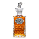 This 25 ounce glass decanter is embellished with a fine pewter casting and a 3-dimensional figure on top. Be sure to match it with some of our Double Old Fashioned glasses. A great addition to any home bar! Made in USA.