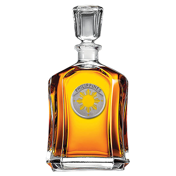 This 24 ounce glass decanter is embellished with a fine pewter casting. It is a great match with two Double Old Fashioned glasses. A great addition to any home bar! Made in USA.