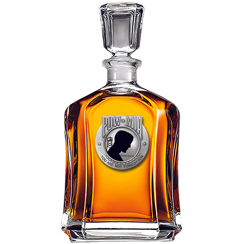 This 24 ounce glass decanter is embellished with a fine pewter casting. It is a great match with two Double Old Fashioned glasses. A great addition to any home bar! Made in USA.