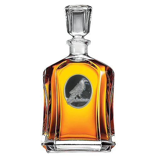 This 24 ounce glass decanter is embellished with a fine pewter casting. It is a great match with two Double Old Fashioned glasses. A great addition to any home bar! Made in USA.