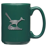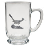 This coffee mug is decorated with a fine pewter casting. It is microwaveable and dishwasher safe with no heat cycle.. The glass coffee mug is 16 ounces, and the ceramic coffee mug is 15 ounces.
