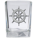 This 1.5 ounce square shot glass is highlighted with a fine pewter casting. Made in USA.