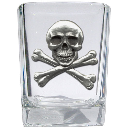 This 1.5 ounce square shot glass is highlighted with a fine pewter casting. Made in USA.