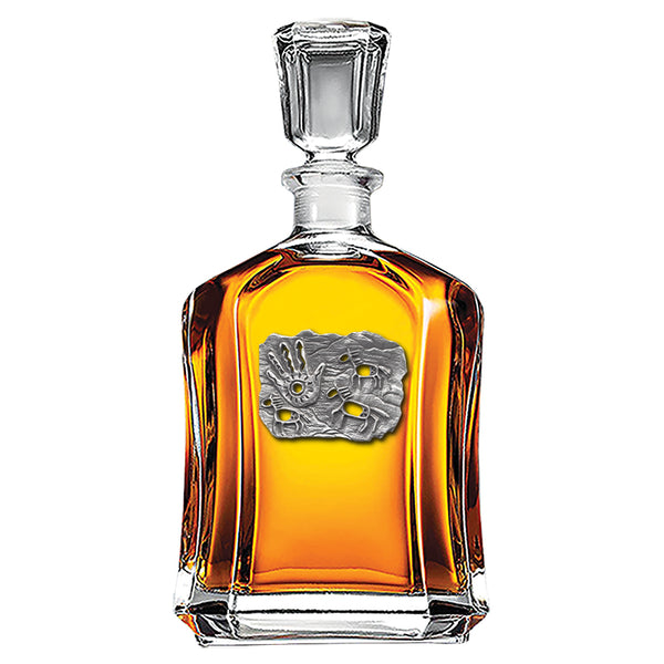 This 24 ounce glass decanter is embellished with a fine pewter casting. It is a great match with two Double Old Fashioned glasses. A great addition to any home bar! Made in USA.