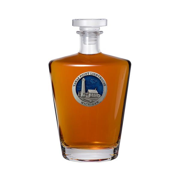 This 25 ounce glass decanter is embellished with a fine pewter casting. Be sure to match it with some of our Double Old Fashioned glasses. A great addition to any home bar!