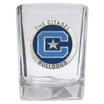 This 1.5 ounce square shot glass is highlighted with a fine pewter casting. Made in USA.