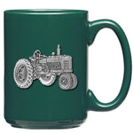 This coffee mug is decorated with a fine pewter casting. It is microwaveable and dishwasher safe with no heat cycle.. The glass coffee mug is 16 ounces, and the ceramic coffee mug is 15 ounces.