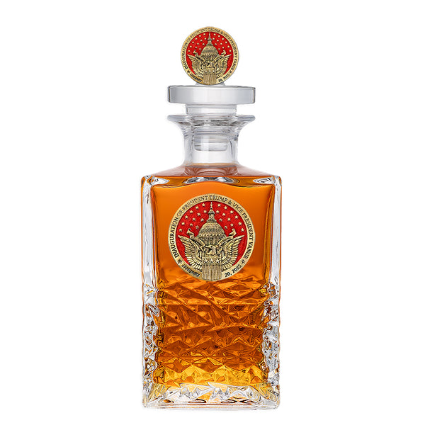 This 25 ounce glass decanter is embellished with a fine pewter casting and 24K gold plating. Be sure to match it with some of our Double Old Fashioned glasses. A great addition to any home bar! Made in USA.