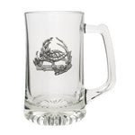 This 15 ounce glass stein features a fine pewter casting. The details in this 3-d sculpted design are incredible! Made in USA.