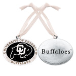 This fine pewter ornament is detailed on both sides. It comes with satin ribbon and in a window package. Use it on your tree, car mirror, or other applications! Made in USA.