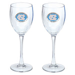 This is a set of two 12 ounce glass goblets with a fine pewter logo medallion bonded to the side.  It could be used to serve water, wine or other beverages. Made in USA.