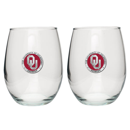 This is a set of two 12 ounce glass goblets with a fine pewter logo medallion bonded to the side. It could be used to serve water, wine or other beverages. Made in USA.