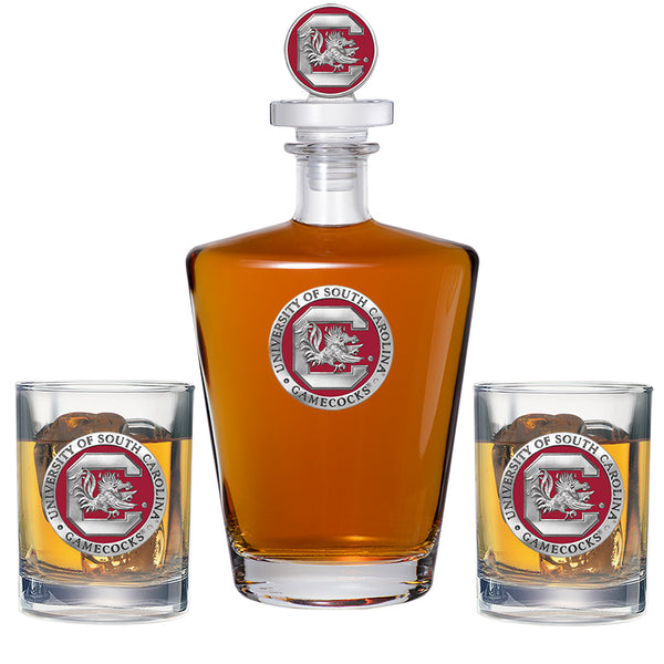 This 25 ounce glass decanter is embellished with a fine pewter casting and a 3-dimensional figure on top. Be sure to match it with some of our Double Old Fashioned glasses. A great addition to any home bar! Made in USA.