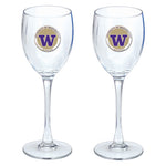 This is a set of two 12 ounce glass goblets with a fine pewter logo medallion bonded to the side.  It could be used to serve water, wine or other beverages. Made in USA.
