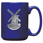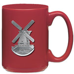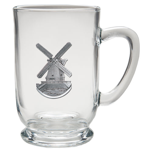 This coffee mug is decorated with a fine pewter casting. It is microwaveable and dishwasher safe with no heat cycle.. The glass coffee mug is 16 ounces, and the ceramic coffee mug is 15 ounces.