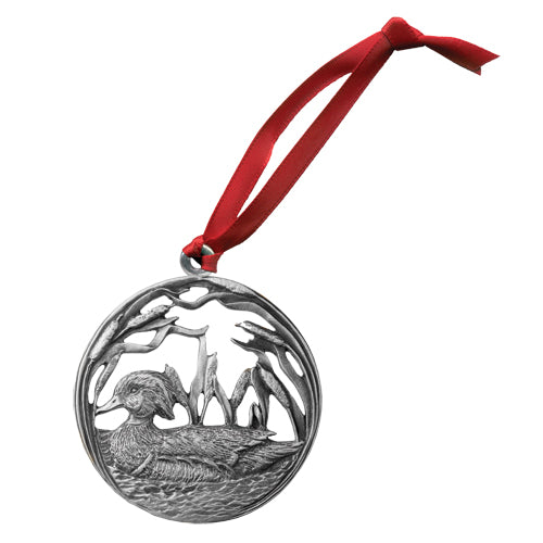 This fine pewter ornament is detailed on both sides. It comes with satin ribbon and in a window package. Use it on your tree, car mirror, or other applications! Made in USA.