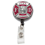 This is a badge reel with fine pewter logo medallion boded in front. It has a retractable cord and belt clip on the back side. Made in USA.Heritage Pewter has...
