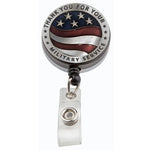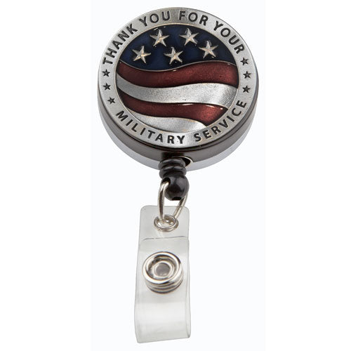 This is a badge reel with fine pewter logo medallion boded in front. It has a retractable cord and belt clip on the back side. Made in USA.Heritage Pewter has...
