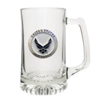 This 25 ounce glass stein features a fine pewter casting. The details in this 3-d sculpted design are incredible! Made in USA.