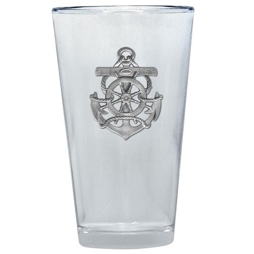 This 16 ounce pint glass is the ultimate vessel for your favorite beverage. It is exquisitely detailed with a fine pewter casting. Made in USA.