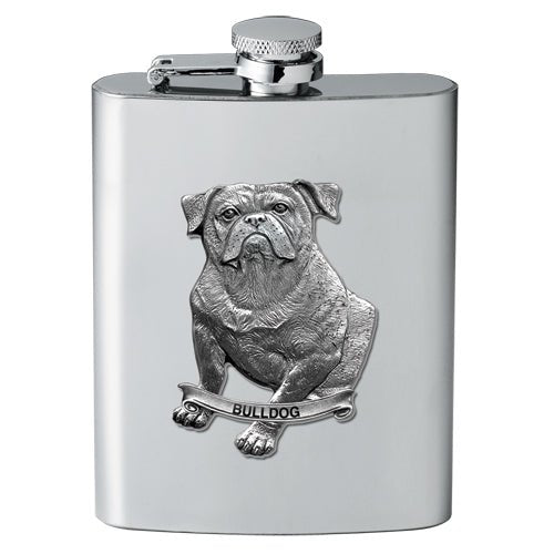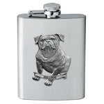 This 8 ounce stainless steel flask is embellished with a fine pewter casting. Assembled in USA.