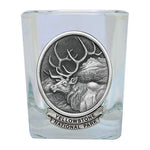 This 9 ounce prism rock glass is the ultimate vessel for your favorite beverage. It is exquisitely detailed with a fine pewter casting. Made in USA. A great addition to any home bar! Yellowstone National Park banner prominently displayed.