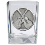 This 1.5 ounce square shot glass is highlighted with a fine pewter casting. Made in USA.