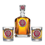 This 24-ounce glass decanter is embellished with a fine pewter casting. It comes with two Double Old Fashioned glasses. A great addition to any home bar! Made in USA.