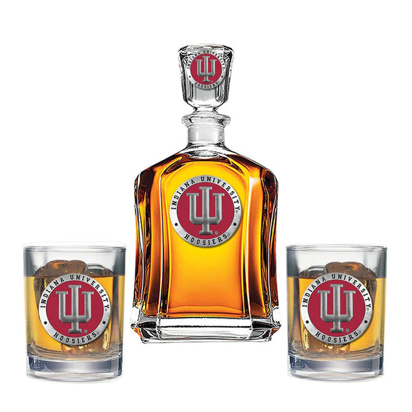 This 24-ounce glass decanter is embellished with a fine pewter casting. It comes with two Double Old Fashioned glasses. A great addition to any home bar! Made in USA. Heritage...