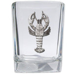 This 1.5 ounce square shot glass is highlighted with a fine pewter casting. Made in USA.
