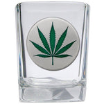 This 1.5 ounce square shot glass is highlighted with a fine pewter casting. Made in USA.