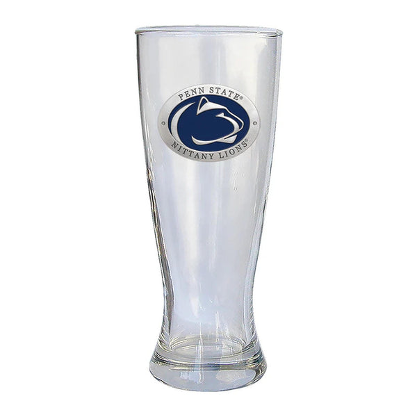 This is a 20 ounce pilsner glass with a fine pewter logo medallion bonded to the front.. It is exquisitely detailed with a fine pewter casting. Made in USA.
