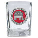 This 1.5 ounce square shot glass is highlighted with a fine pewter casting. Made in USA.