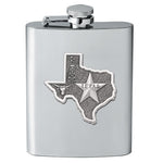 This 8 ounce stainless steel flask is embellished with a fine pewter casting. Assembled in USA.